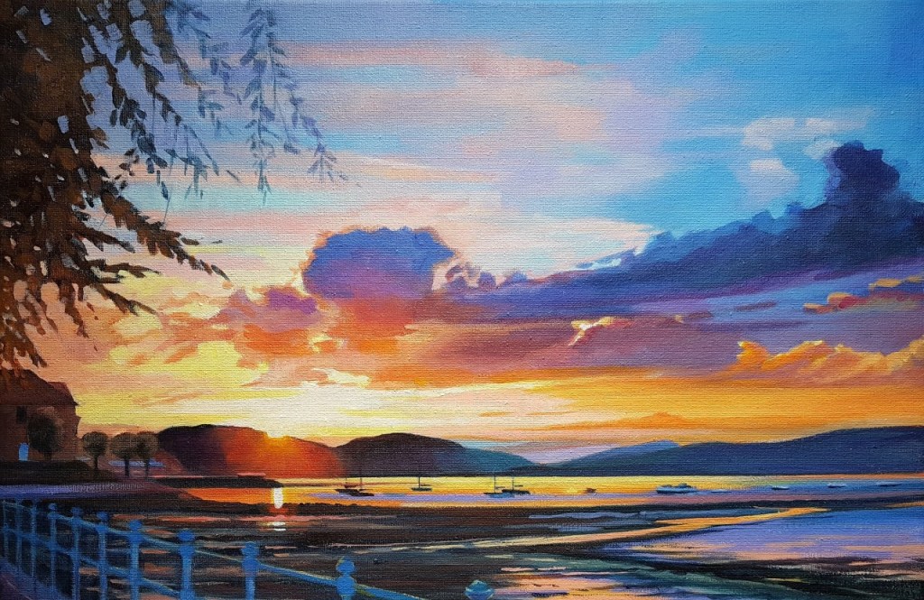 My main inspiration comes from the fabulous scenery throughout the west coast of Scotland, especially the Clyde Coast, Argyll, Bute and the Mull of Kintyre. The varied landscape around the Crinan canal is a particular favourite. Rivers and lochs surrounded by vibrant foliage are a common feature of my work.